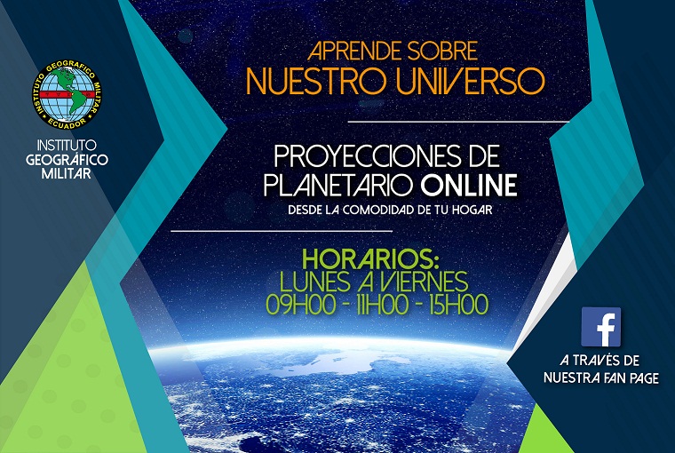 El Centro Cultural “Pedro Vicente Maldonado” del Instituto Geográfico Militar presenta su nueva modalidad ONLINE del PLANETARIO, a través de nuestra Fan Page: @GeograficoMilitarEcuador.