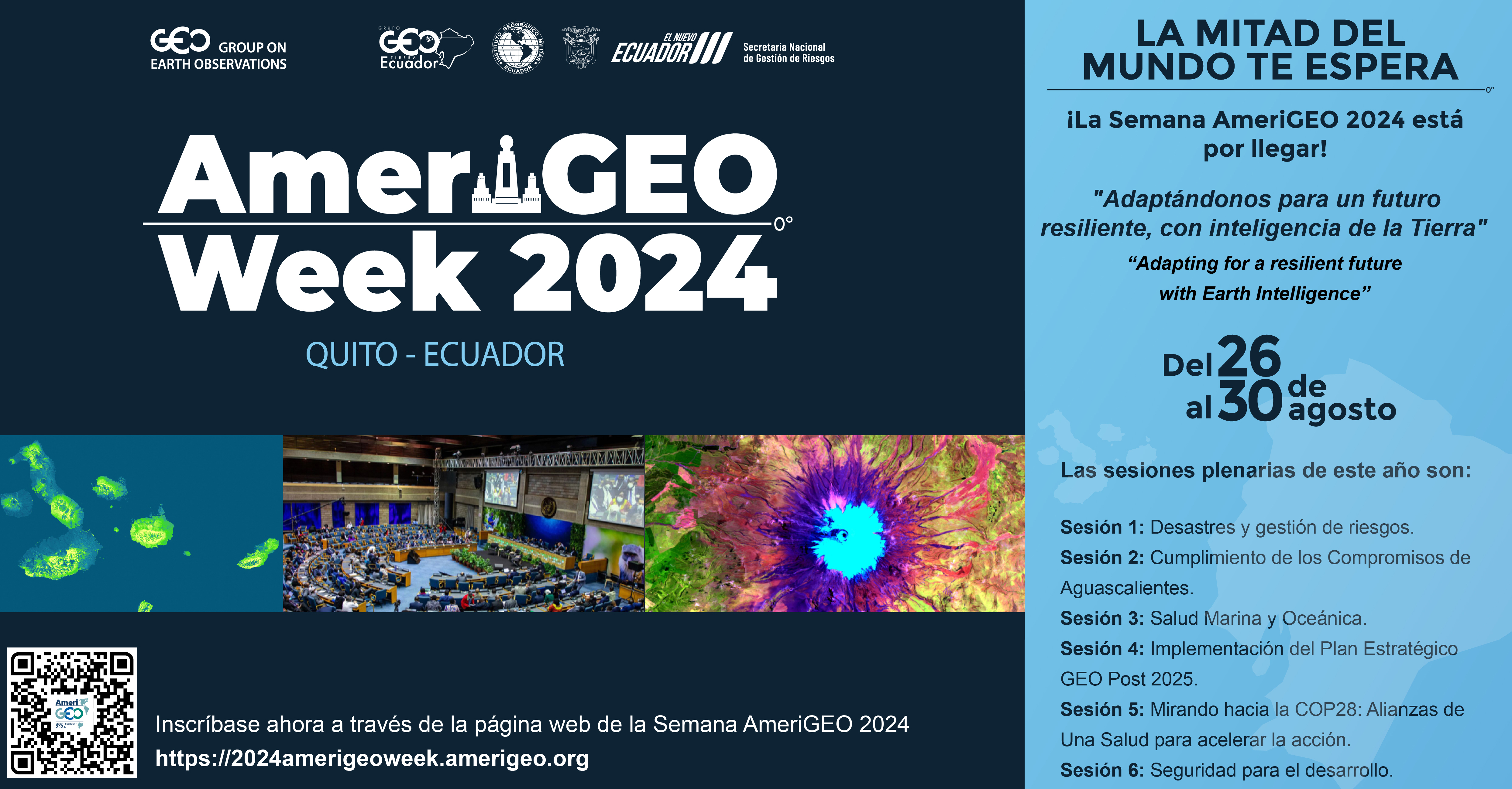 Inscríbase ahora a través de la página web de la Semana AmeriGEO 2024 (https://2024amerigeoweek.amerigeo.org/ ) y esté atento a más información. Si ya se ha inscrito y quiere conocer más del país anfitrión, eche un vistazo al vídeo (https://vimeo.com/showcase/11257698 ) que han preparado nuestros colegas de GEO Ecuador para ver un anticipo de lo que nos espera durante el evento.