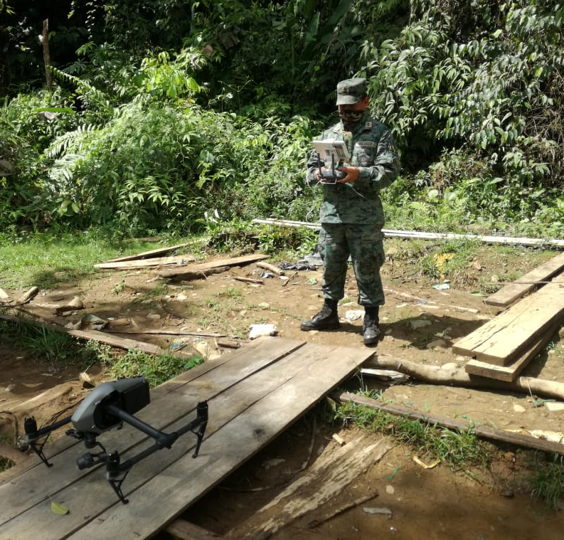 En cumplimiento a la Ley de la Cartografía Nacional, el Instituto Geográfico Militar apoya al sector de seguridad y defensa, con la generación de productos cartográficos, entre ellos, con la toma de fotografía aérea con drones en sectores de minería ilegal.