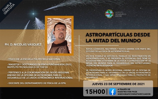 El Instituto Geográfico Militar se complace en invitar a la Charla gratuita: “Astropartículas desde la mitad del mundo”