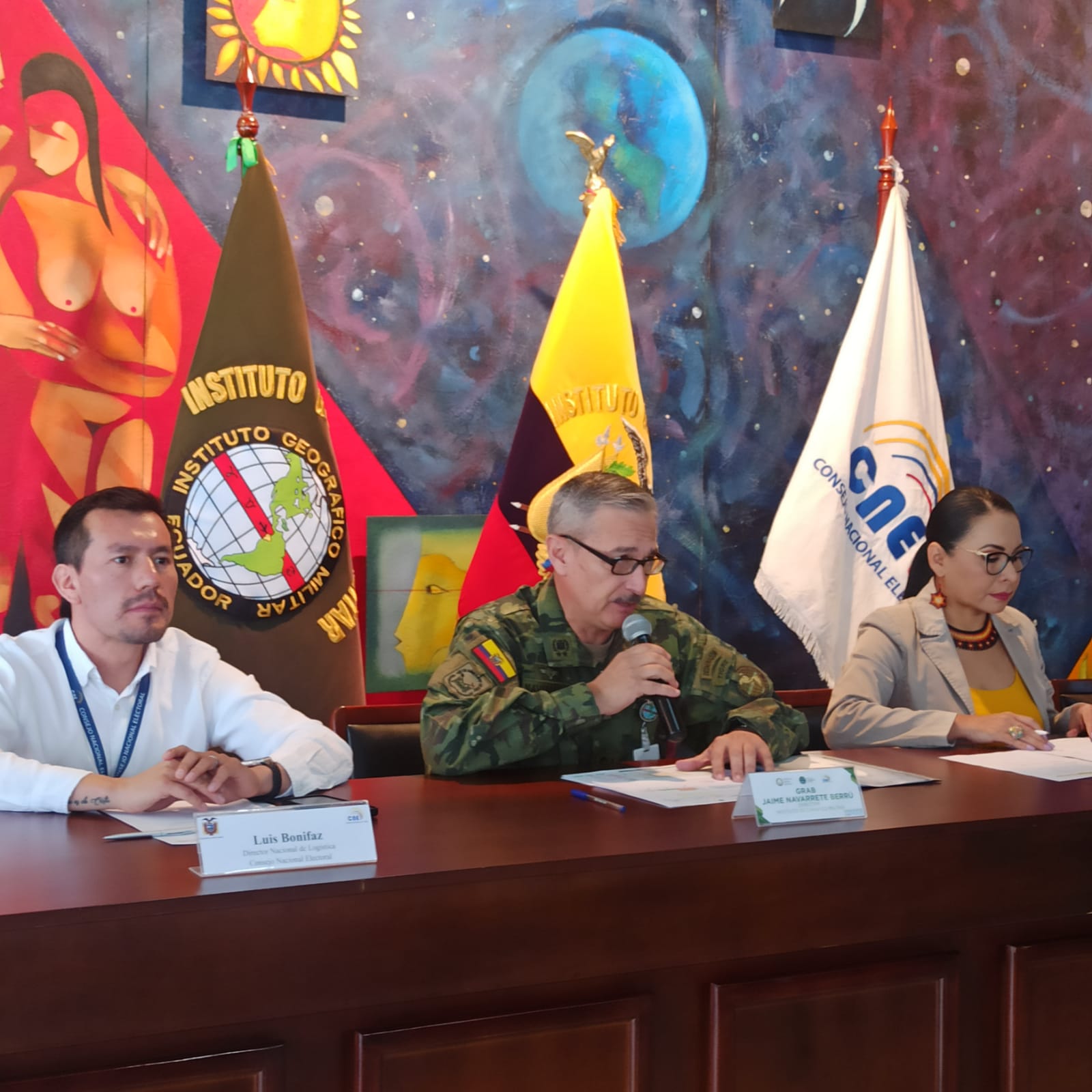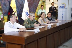 Autoridades del Instituto Geográfico Militar y del Consejo Nacional Electoral, informaron a la ciudadanía ecuatoriana, sobre el avance en la impresión de papeletas electorales en el marco del proyecto Elecciones Anticipadas 2023.