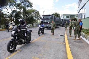 De igual manera, pudieron observar la salida del primer convoy custodiado por las Fuerzas Armadas del Ecuador desde el IGM, hacia la empresa integradora con los paquetes electorales.