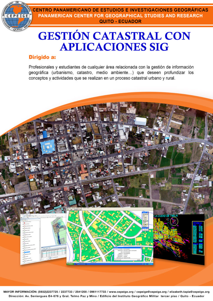 Compartimos información del Centro Panamericano de Estudios e Investigaciones Geográficas CEPEIGE – Ecuador, sobre el “Curso Gestión Catastral con aplicaciones SIG – Modalidad virtual.