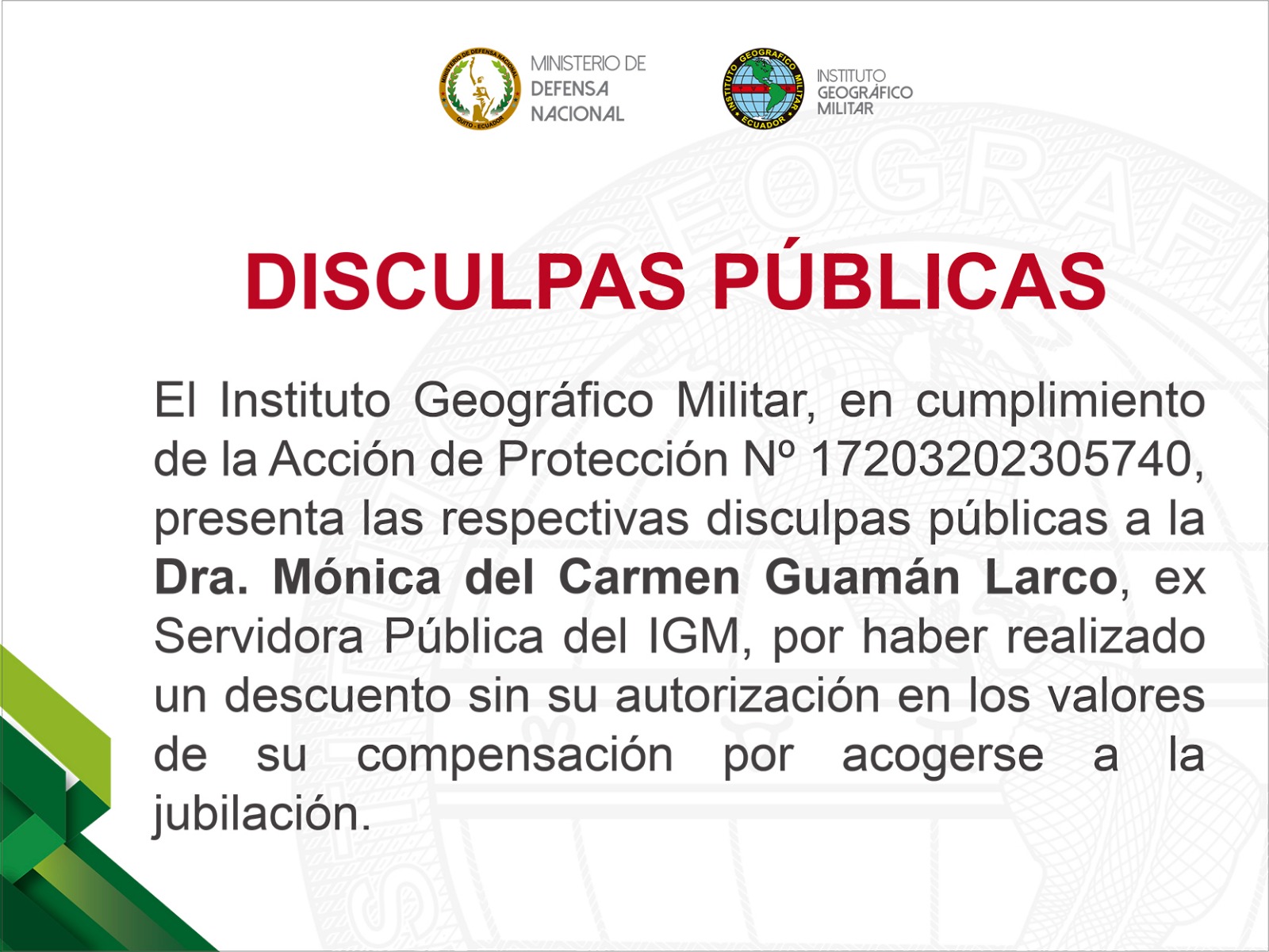 Disculpas Públicas Dra. Mónica del Carmen Guamán Larco