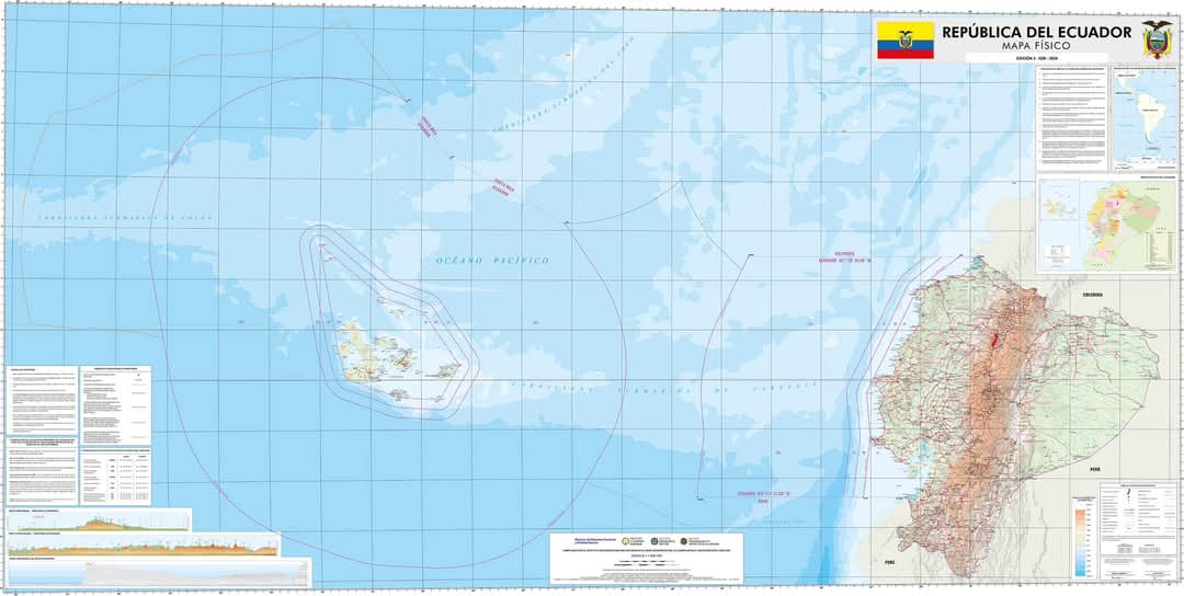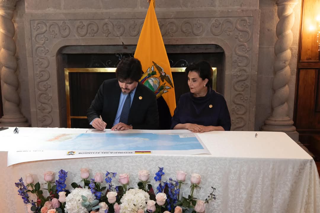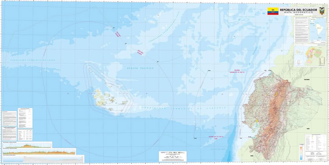 “La región Insular ya no es un recuadro aparte. Ahora los mapas muestran la totalidad de nuestro territorio, incluyendo los límites marítimos con Colombia, Perú y Costa Rica,” explicó la canciller del Ecuador, Gabriela Sommerfeld.