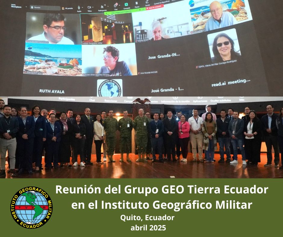 El 15 de abril de 2025, el Instituto Geográfico Militar (IGM) fue la sede de la primera reunión del año del Grupo GEO Tierra Ecuador, filial nacional del Group of Earth Observation (GEO global), este grupo fue conformado oficialmente en el año 2024 y cuenta con la participación activa de 17 entidades del sector público, académico y de investigación privada. El encuentro, realizado tanto de manera presencial como virtual, marcó el inicio de un nuevo ciclo de trabajo con la finalidad de coordinar el desarrollo y uso de información proveniente de la Observación de la Tierra para apoyar la toma de decisiones informadas.