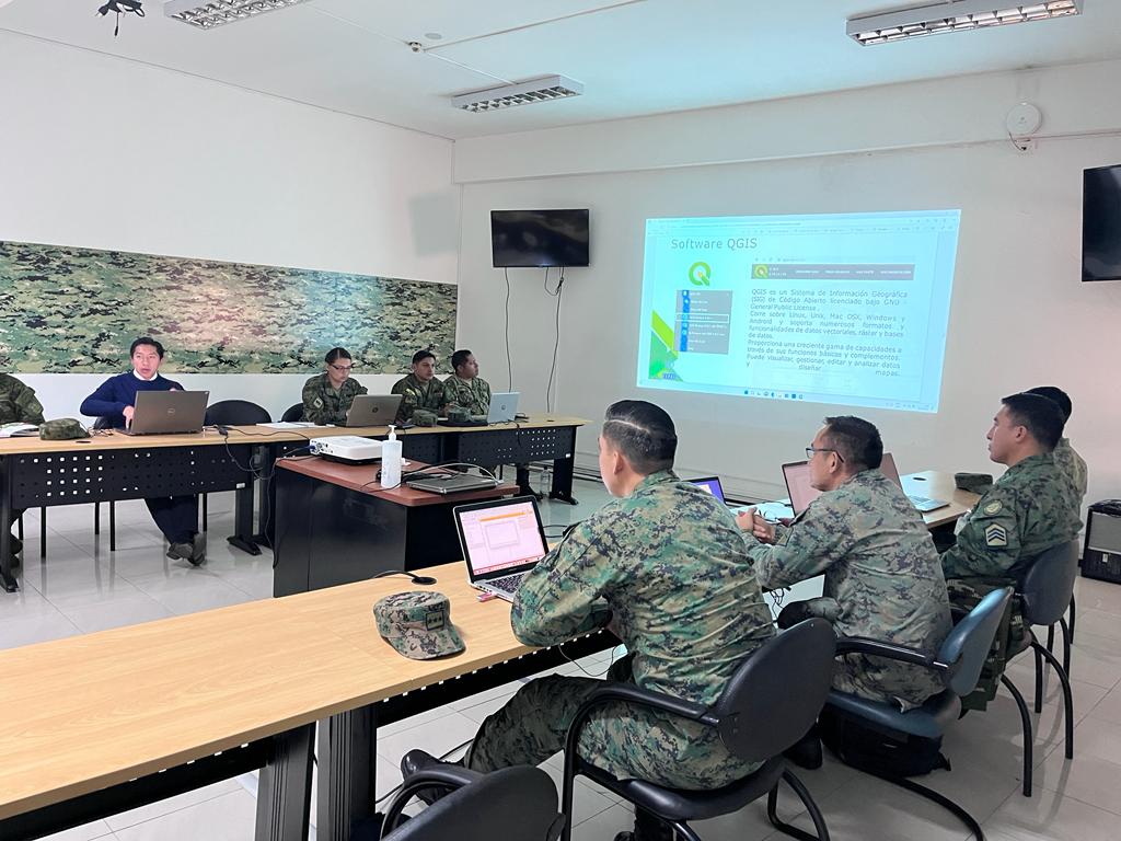 El Instituto Geográfico Militar a través de su personal técnico de las Direcciones Cartográfica y Geográfica, se encuentra capacitando al personal de Fuerzas Armadas  en el “I Curso de procesamiento de imágenes satelitales con software libre, para la teledetección de posibles actividades ilícitas, generación de cartografía de pronta respuesta y vigilancia y control de las operaciones militares”.