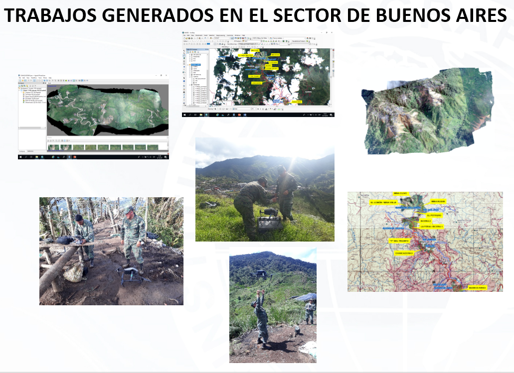 En cumplimiento al Decreto Ejecutivo No. 812, Estado de Excepción del 01 de julio de 2019, respecto a la conmoción interna en la parroquia La Merced de Buenos Aires del Cantón Urcuquí, de la provincia de Imbabura, el Instituto Geográfico Militar colaboró técnicamente con su contingente humano y equipos ante el Comando Operacional No. 1 “Norte”, a las operaciones militares de control de armas, munición y explosivos (CAMEX).