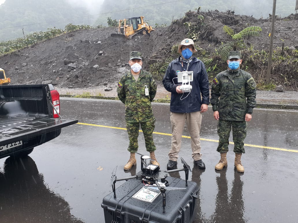 En cumplimiento a la Ley de la Cartografía Nacional, el Instituto Geográfico Militar del Ecuador apoya al Sector de Seguridad y Defensa, con la generación de datos y productos cartográficos fundamentales en la erosión fluvial del Río Quijos en los sectores de la Cascada de San Rafael, provincia de Sucumbíos, a través de los procesos que incluyen la toma de fotografía aérea con Dron Matrice 100, que permite la captura de fotografías para la obtención de ortofotos de pronta respuesta, a fin de visualizar la magnitud y avance de este evento.