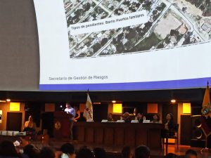 El Instituto Geográfico Militar a través del personal de la Dirección Geográfica, Tcrn. Darwin Ibañez, Director; MSc. Catalina Erazo; Dra. Rosa Cuesta y Dra. Paulina Guerrón, recibieron el reconocimiento por parte de la Secretaría Nacional de Riesgos, al participar de forma activa en la elaboración de la cartografía temática que hace referencia al crecimiento urbano del Distrito Metropolitano de Quito y por ser integrantes del jurado calificador en el Mapatón de Riesgo 2023.