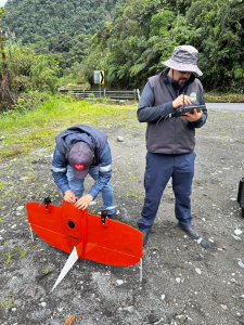 Como apoyo a la Secretaría Nacional de Gestión de Riesgos y Emergencias, personal técnico de la Dirección Cartográfica del IGM – Proceso de Captura de Datos Geoespaciales, realizó el levantamiento aerofotogramétrico con 3 drones en vuelos simultáneos sobre dicho sector, ejecutando 12 km de levantamiento a lo largo del cauce del Río Quijos en un solo día de vuelo.