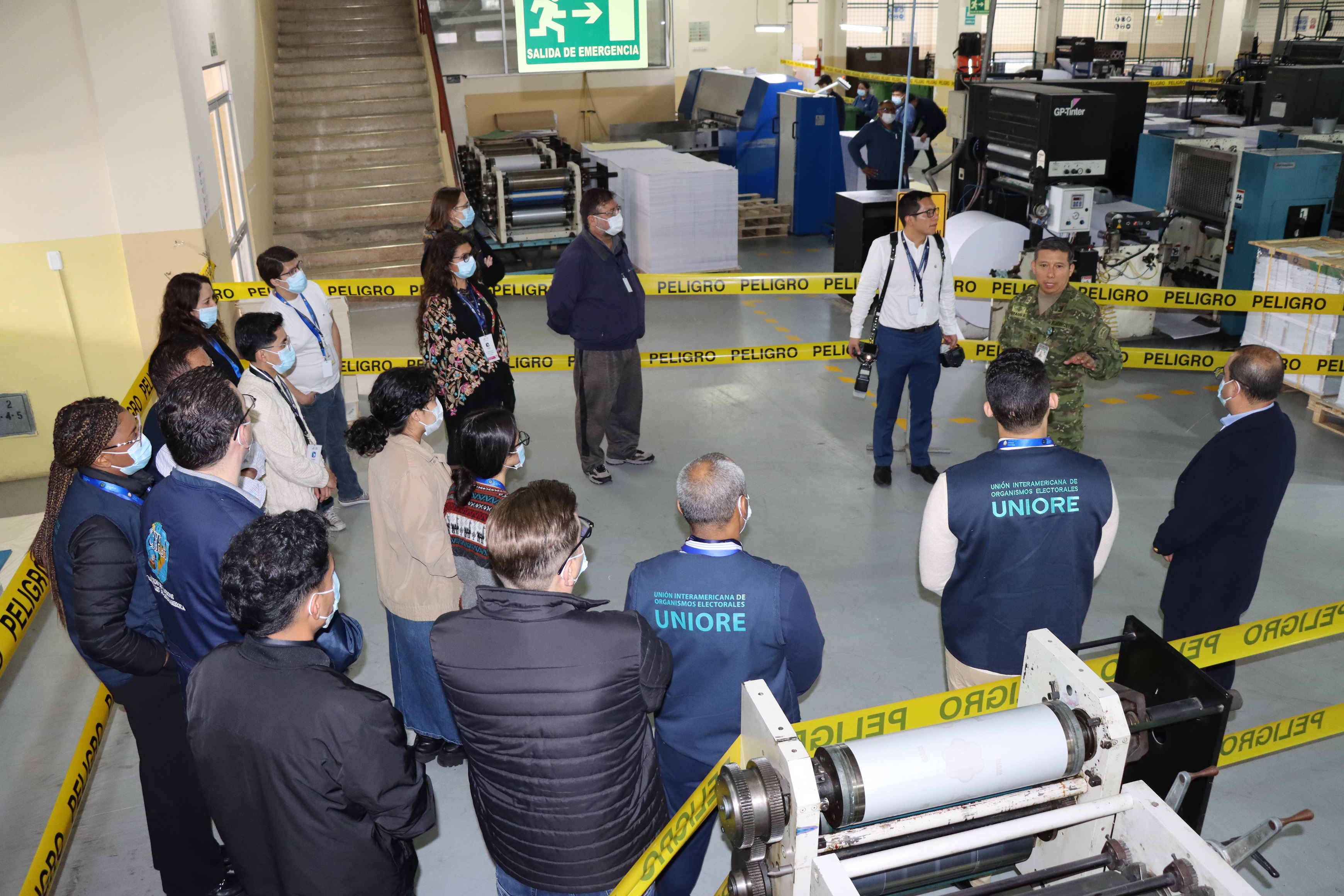 Durante el recorrido por la planta de seguridad documentaria, los observadores verificaron los estrictos controles implementados en cada etapa de la producción. Las medidas de protección que garantizan la confiabilidad del material electoral incluyen: