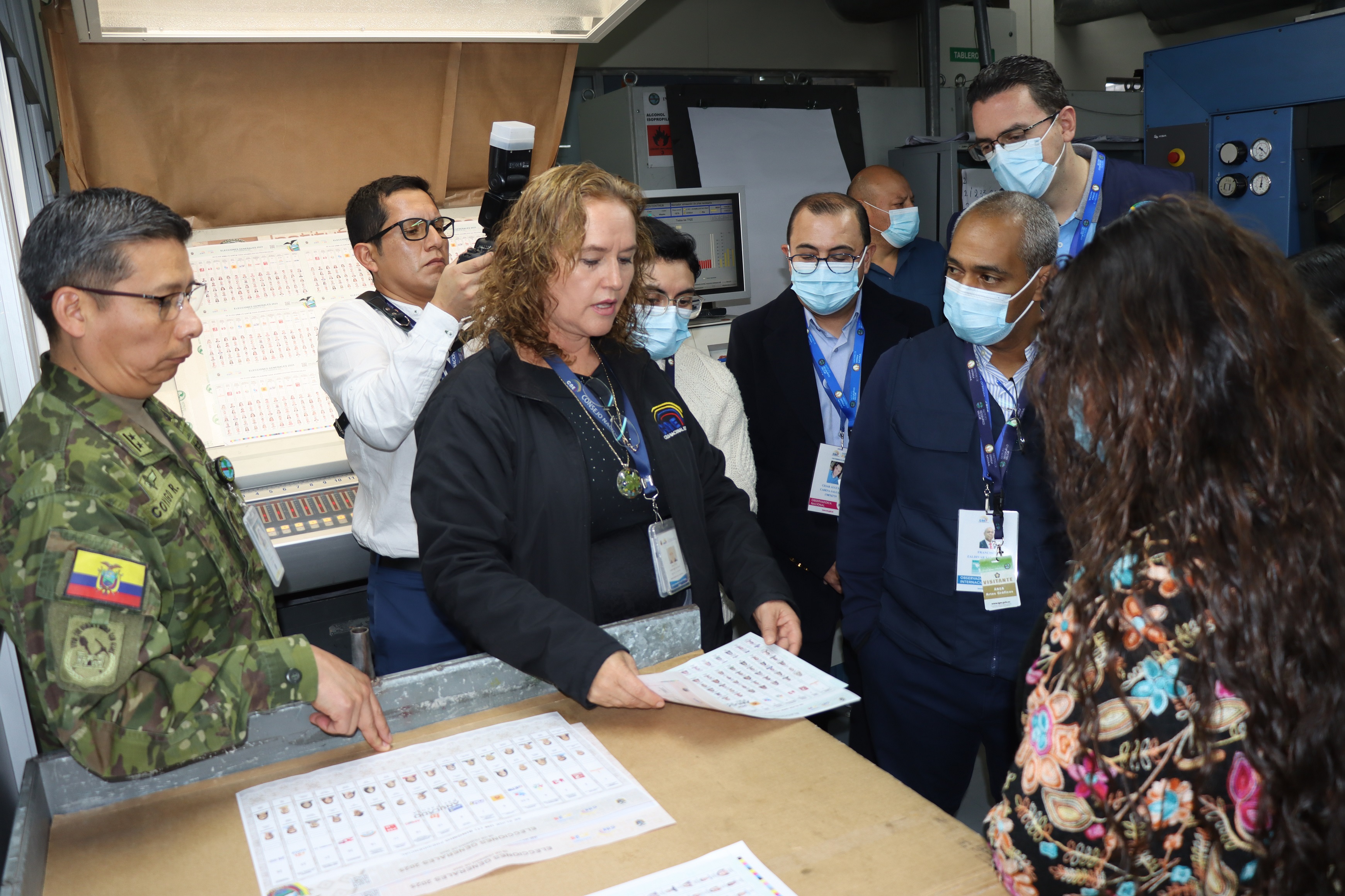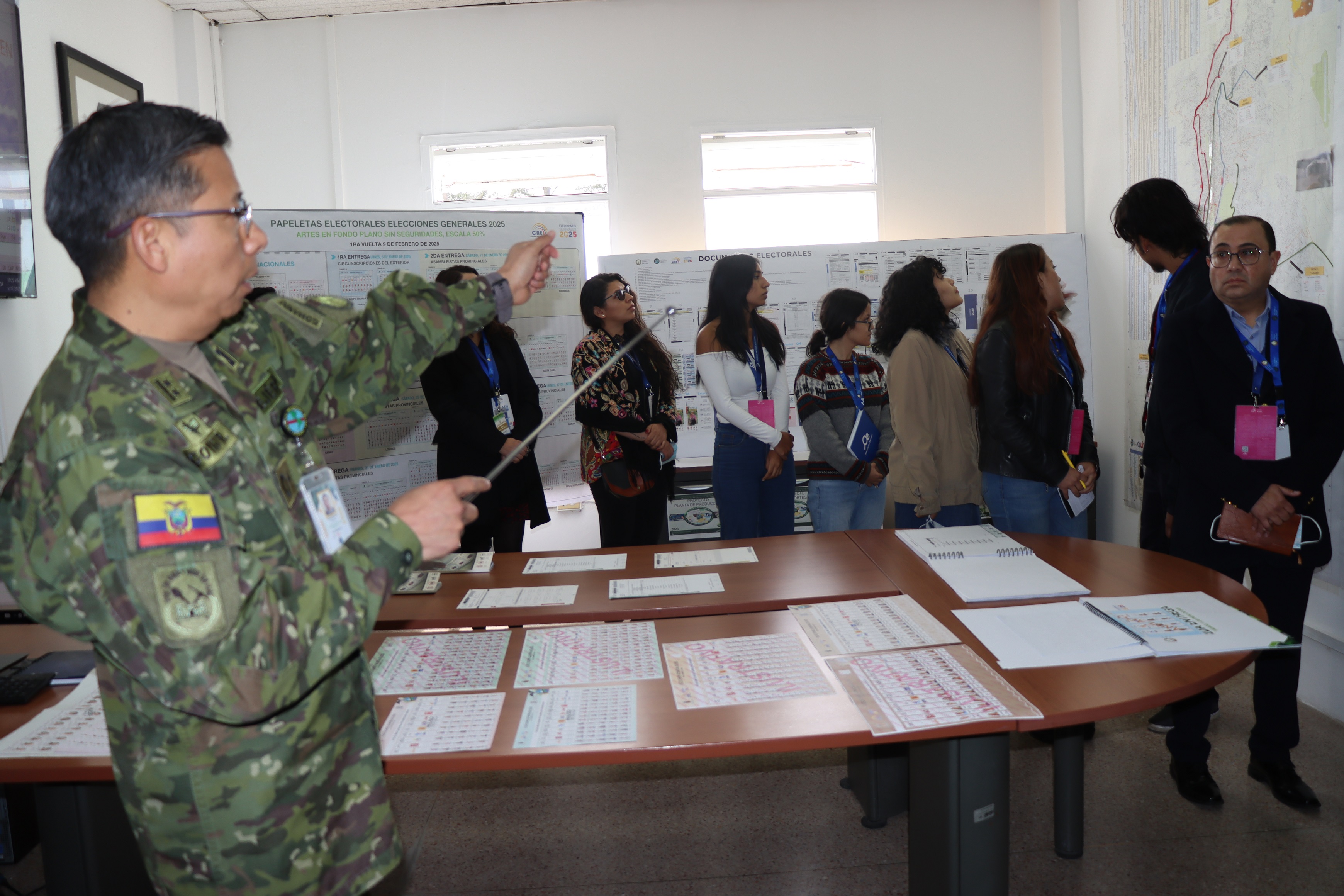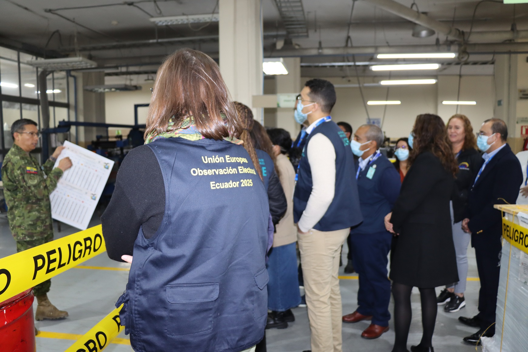 En el marco de las próximas Elecciones Generales 2025 del Ecuador, el Instituto Geográfico Militar (IGM) recibió hoy la visita de observadores nacionales e internacionales, quienes certificaron el riguroso proceso de elaboración e impresión de las papeletas y documentos electorales. Este reconocimiento refuerza la confianza en el IGM como una institución clave para garantizar la integridad y seguridad del proceso democrático en el Ecuador.
