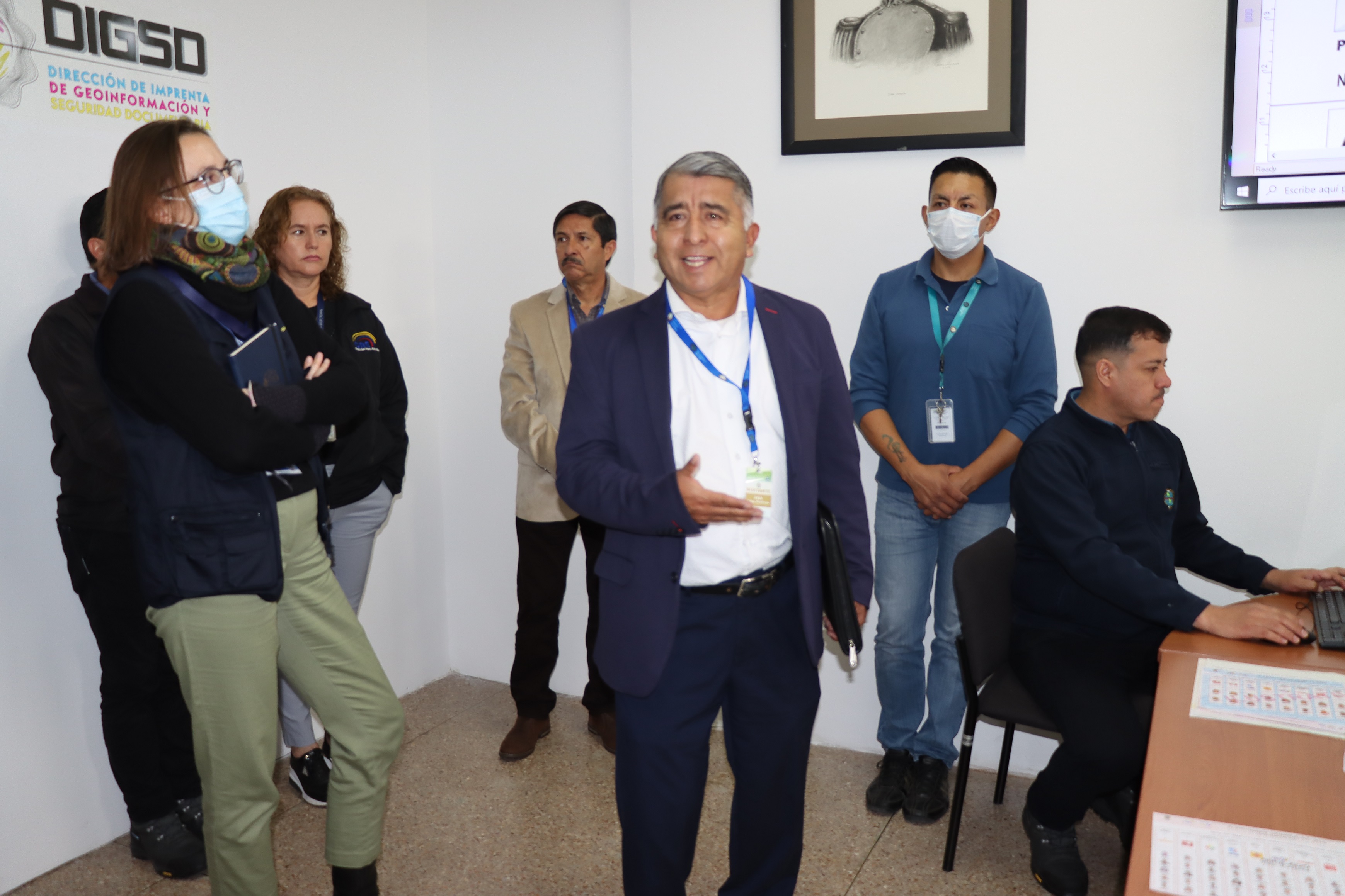 El Tcrn EM Marcelo Torres, Subdirector del IGM, dio la bienvenida a la delegación y destacó el compromiso del Instituto con la producción de material electoral de la más alta calidad y fiabilidad. Por su parte, el Tcrn EM Ricardo Coyago, Director de Imprenta de Geoinformación y Seguridad Documentaria del IGM, presentó el detallado procedimiento técnico que asegura la autenticidad del material producido.