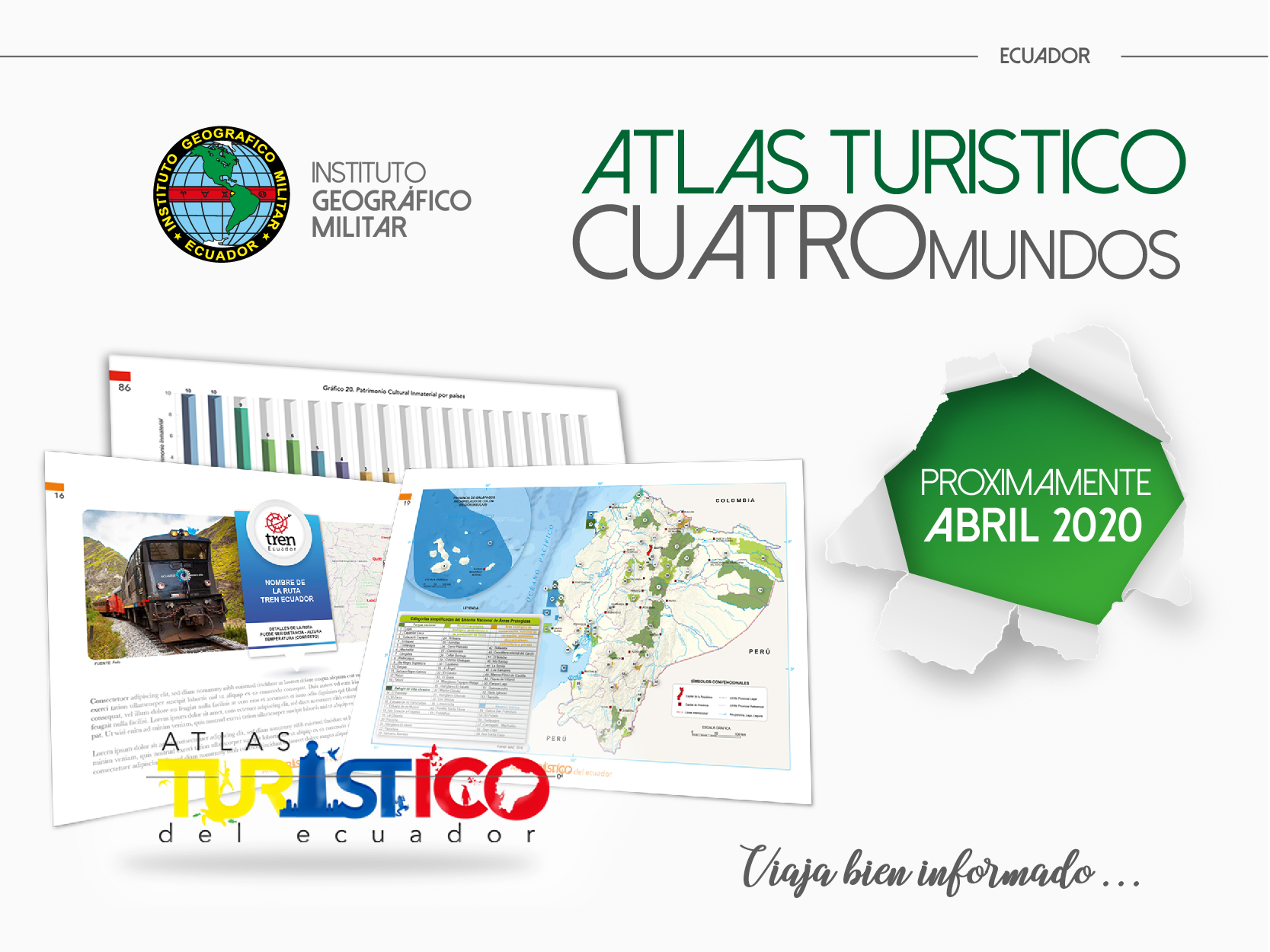 En cumplimiento a la Ley de la Cartografía Nacional y a la misión del Instituto Geográfico Militar (I.G.M.), en el marco de la divulgación de estudios geográficos del país, se ha trabajado con el Ministerio de Turismo (MINTUR), en la elaboración de varios documentos, entre ellos, el Mapa Ecoturístico de Galápagos y Mapa Vial Turístico del Ecuador, en la actualidad se trabaja en el primer “Atlas Turístico del Ecuador: Cuatro mundos para descubrir”, documento que tiene carácter de oficial.