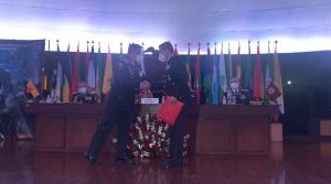 En el marco del Seminario de Avances y Proyecciones del proceso de Transformación de la Fuerza Terrestre, realizado en el Instituto Geográfico Militar, el señor GRAB. Santiago Almeida, Inspector General del Ejército, realizó el reconocimiento al señor CRNL. de EMC. Pablo Acosta A., Director del IGM, por la colaboración brindada durante el desarrollo de dicho evento.