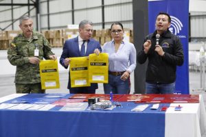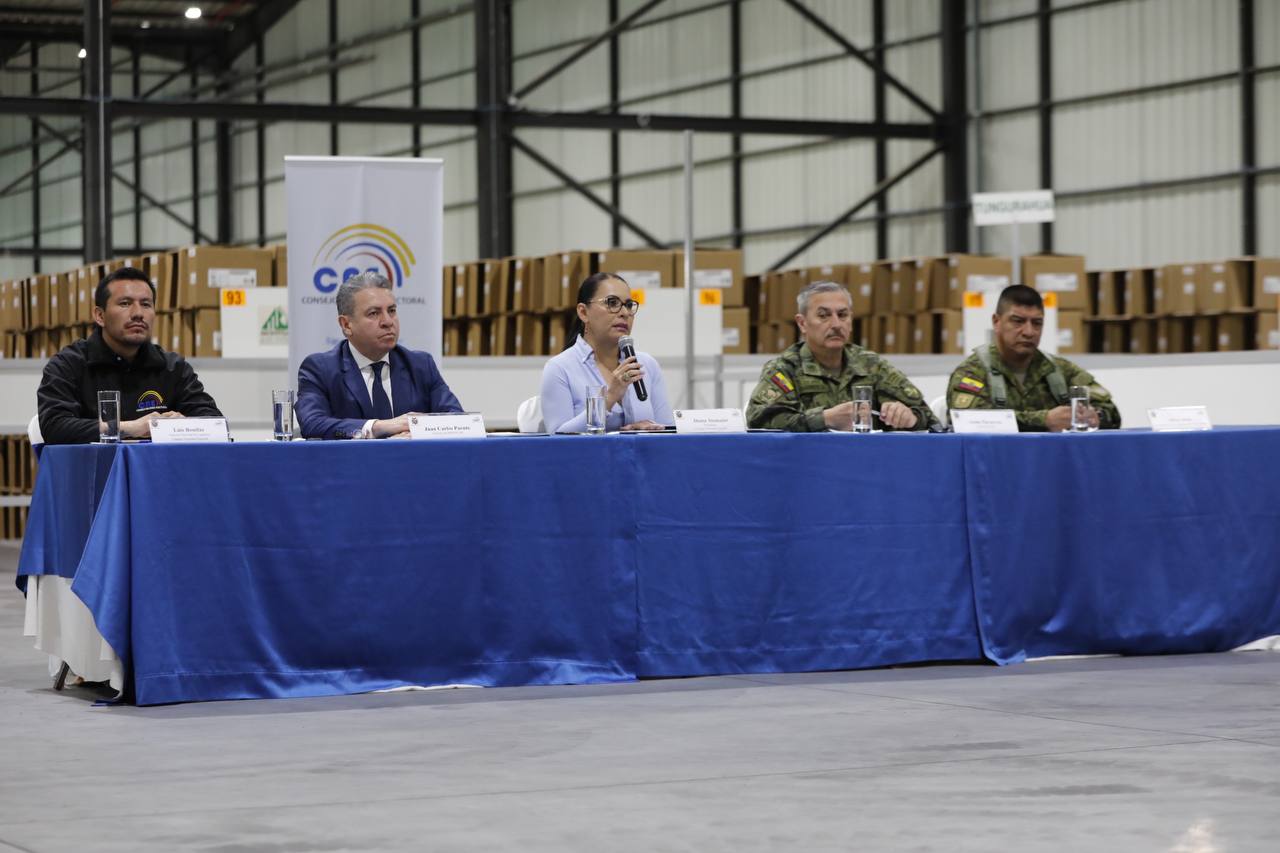 El señor Grab. Jaime Navarrete Berrú, Director del Instituto Geográfico Militar del Ecuador, junto a las autoridades del Consejo Nacional Electoral del Ecuador, Montgar y Fuerzas Armadas del Ecuador, participó de la Rueda de Prensa, organizada por el CNE, en la cual se dio a conocer el avance de la integración de todos los elementos que conforman los paquetes electorales, para las Elecciones Anticipadas 2023.