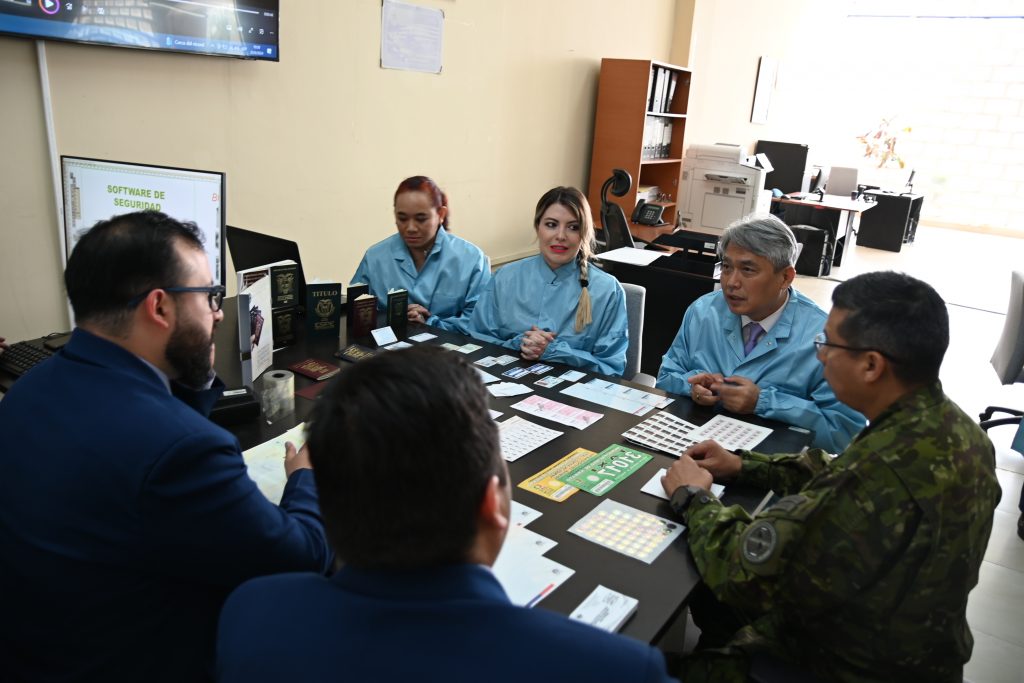 Durante su recorrido evidenciaron el control de calidad minucioso y el cumplimiento de los más altos estándares internacionales, como tintas reflectivas; chips de seguridad; diseño de patrones con alto grado de complejidad; tintas ópticamente variables, micro textos, entre otros, por cada documento.