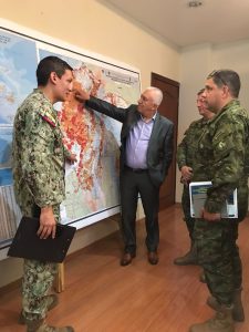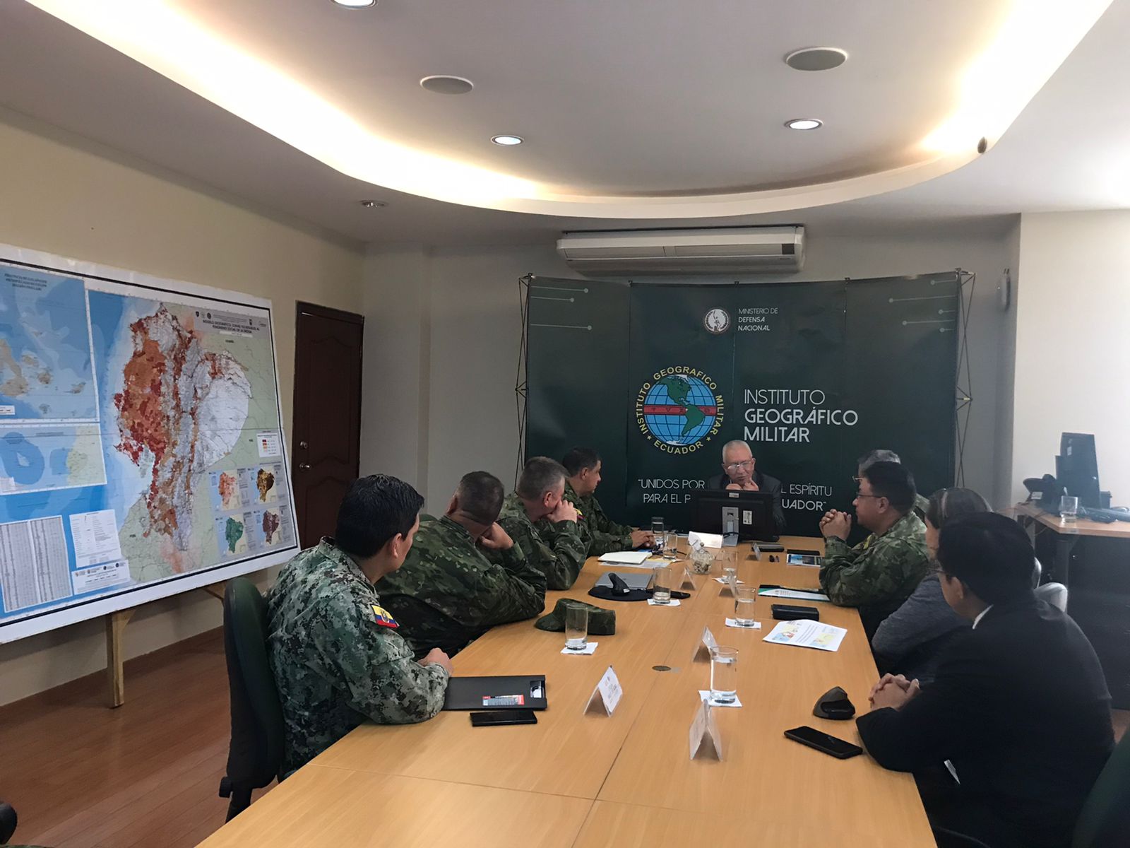 El señor Crnl. de EMC. Pablo Acosta Álvarez, Director del Instituto Geográfico Militar acompañado del equipo técnico de la Gestión Geográfica, Mayo. Freddy Romero, Dra. Martha Villagomez e Ing. César Buitrón, presentaron al señor Grad. (S.P.) Luis Lara Ministro de Defensa Nacional conjuntamente con el señor Grab. Santiago Almeida Subsecretario de Defensa del Ejército, el “Modelo Geográfico para la Determinación de Zonas Vulnerables por el Fenómeno de las Drogas”, que permitirá identificar sitios de intervención territorial prioritarios a nivel nacional, en base a insumos de las instituciones oficiales en el ámbito de seguridad y defensa, por medio de: