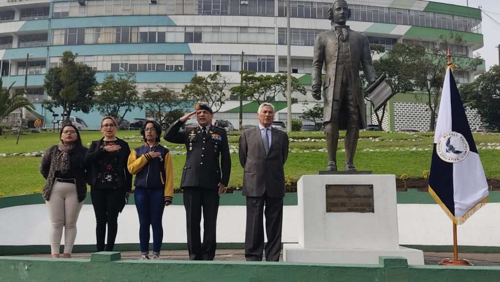 El Instituto Geográfico Militar Ecuador recibió la visita de las autoridades, docentes y estudiantes de la Unidad Educativa Modelo Politécnico, quienes rindieron un merecido homenaje a través de una ofrenda floral, al Ilustre Ecuatoriano Don Pedro Vicente Maldonado como patrono de dicha institución.